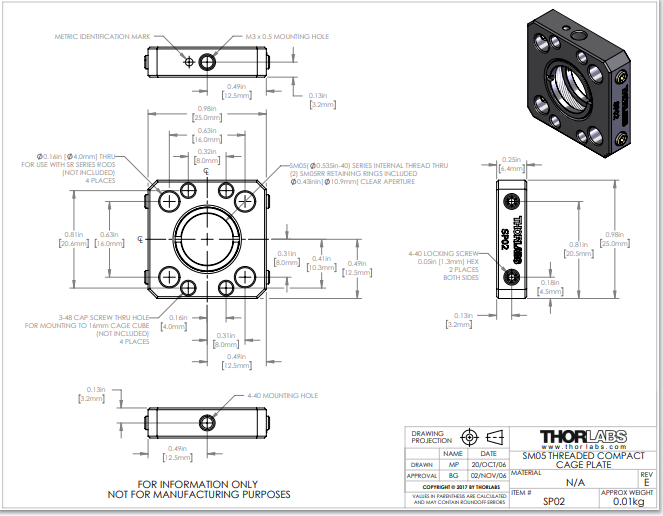 Thorlabs索雷博 SP02 - 紧凑型笼板