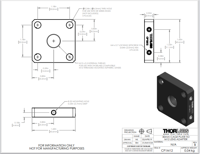 Thorlabs索雷博     CP1M12 - 30 mm笼板