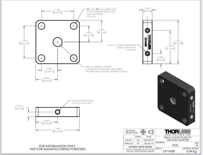Thorlabs索雷博 CP1M08 - 30 mm笼板