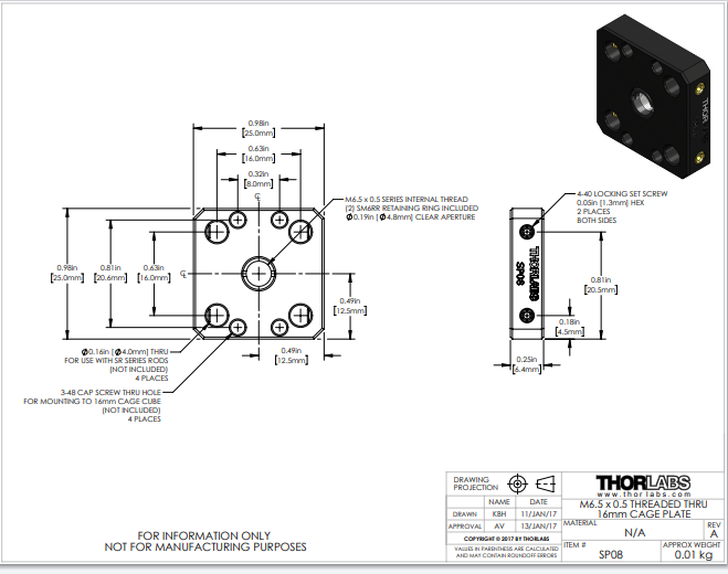 Thorlabs索雷博 SP08 - 16 mm笼板