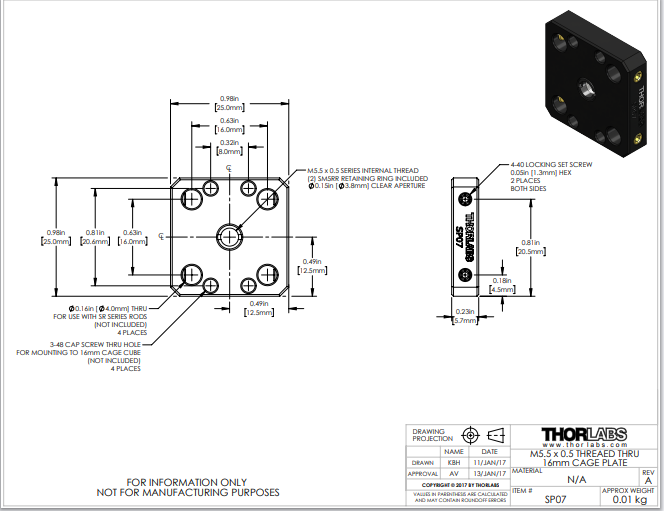 Thorlabs索雷博     SP07 - 16 mm笼板
