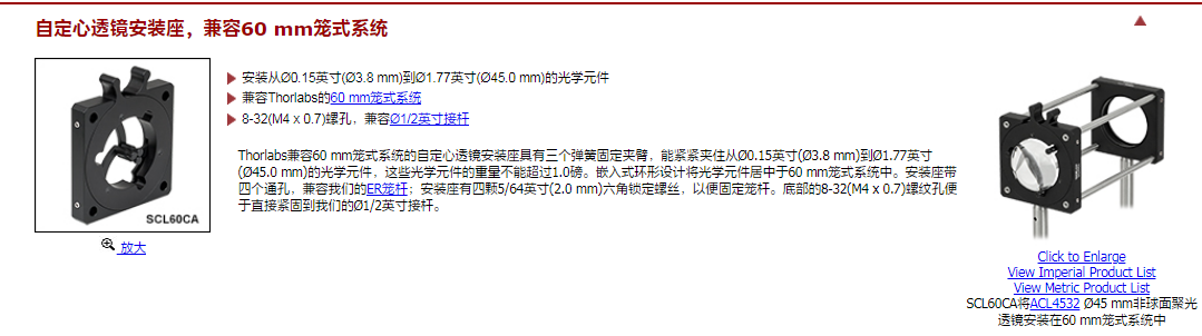 Thorlabs索雷博 SCL60CA - 自定心透镜安装座