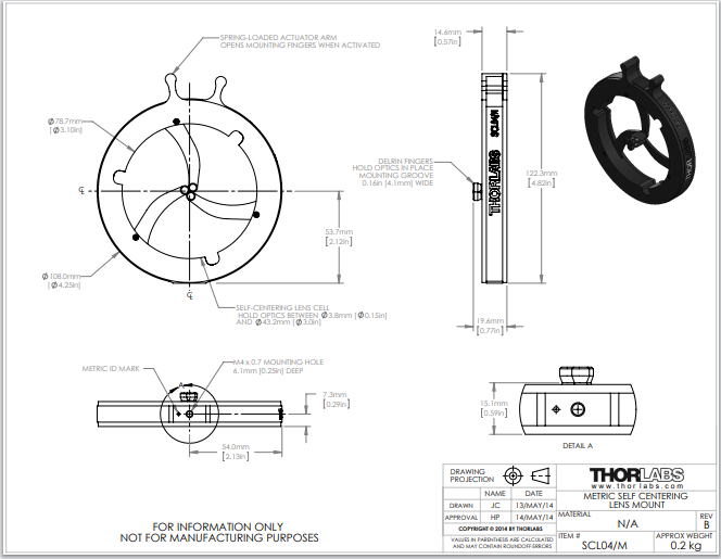 Thorlabs索雷博 SCL04/M - 自定心透镜安装座
