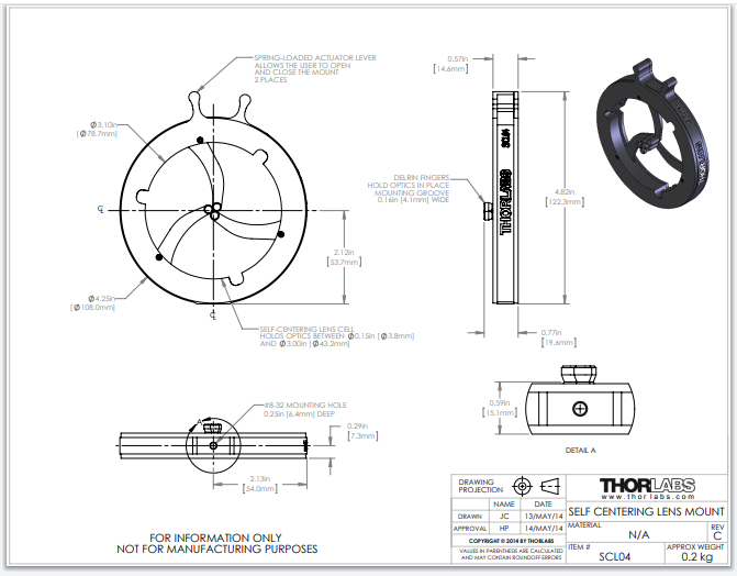 Thorlabs索雷博     SCL04 - 自定心透镜安装座