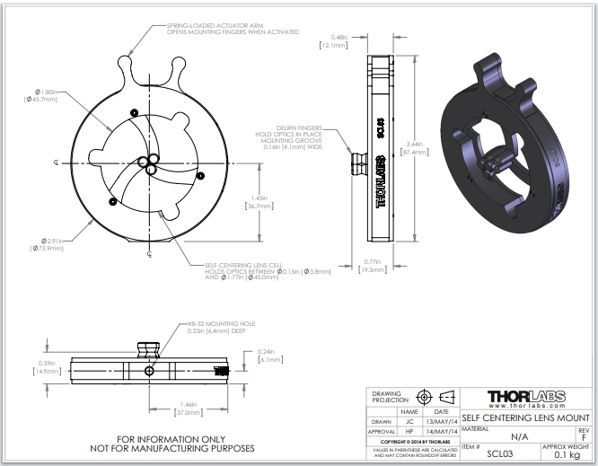 Thorlabs索雷博 SCL03 - 自定心透镜安装座