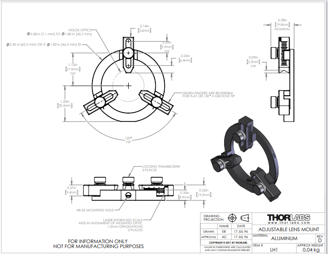 Thorlabs索雷博 LH1 - 可调透镜安装座