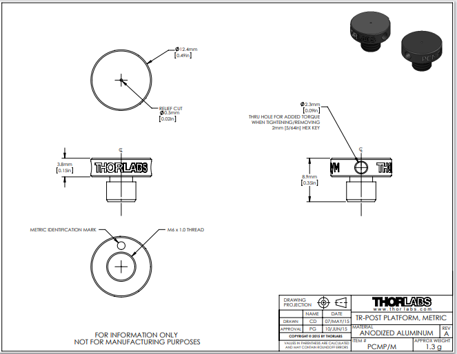 Thorlabs索雷博     PCMP/M - 平面底座转接件