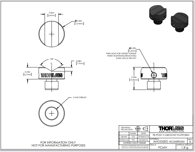 Thorlabs索雷博     PCMV - V形槽底座转接件