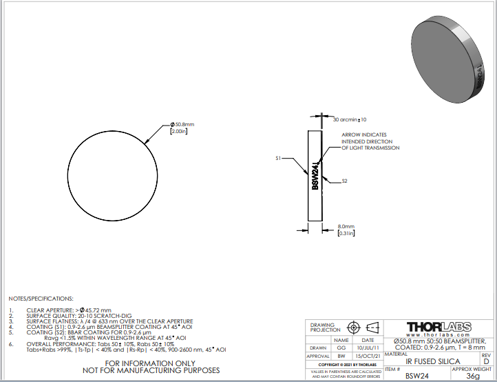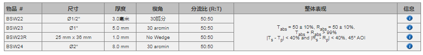 Thorlabs索雷博 BSW24 红外熔融石英平板分束镜