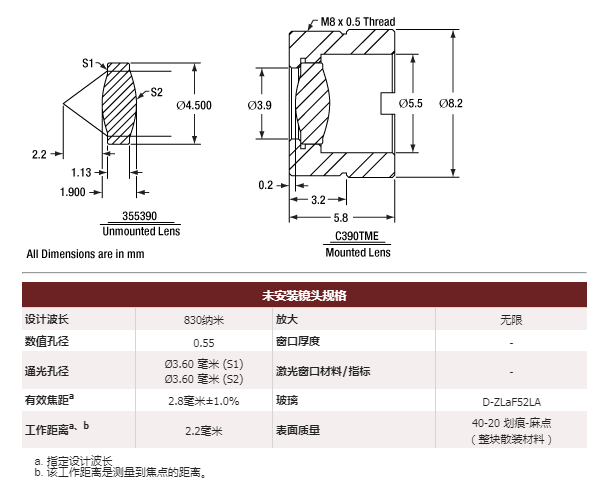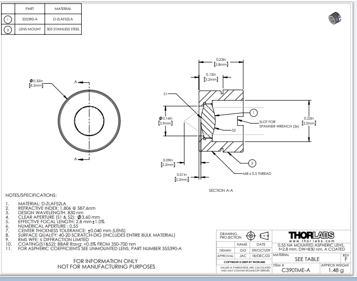 Thorlabs索雷博 C390TME-A 非球面透镜