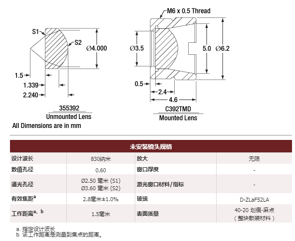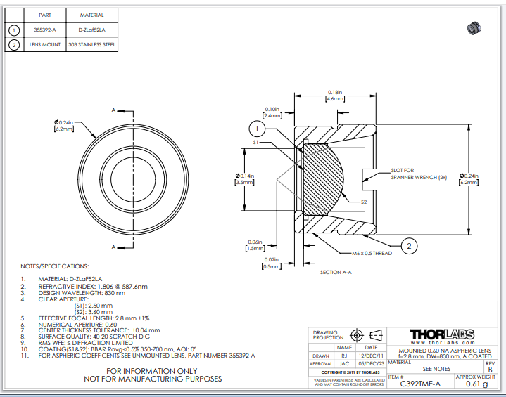 Thorlabs索雷博       C392TME-A   非球面透镜