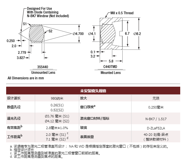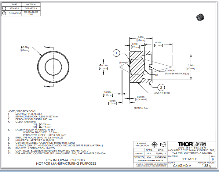 Thorlabs索雷博       C440TMD-A   非球面透镜