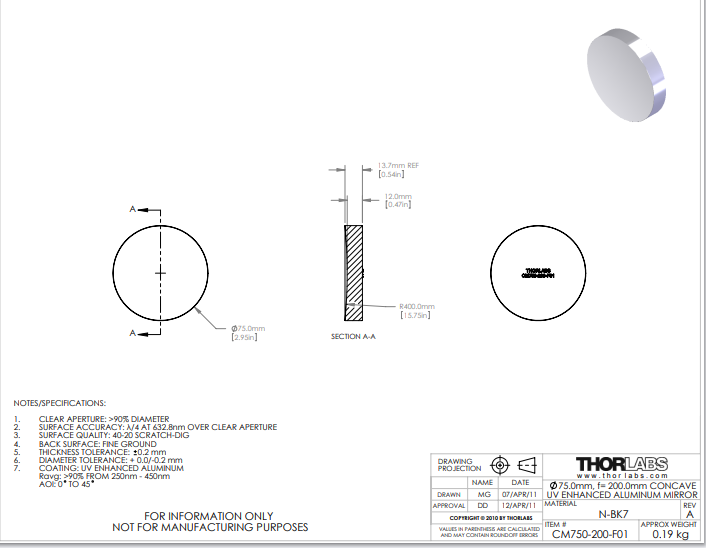 Thorlabs索雷博       CM750-200-F01   凹面反射镜