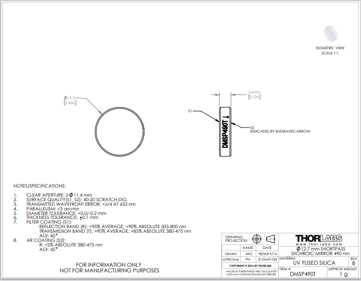 (1064 nm, 10 Hz, 10 ns, Ø1.00 mm)