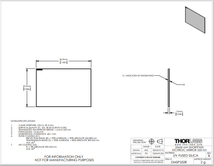 (1064 nm, 10 Hz, 10 ns, Ø1.00 mm)