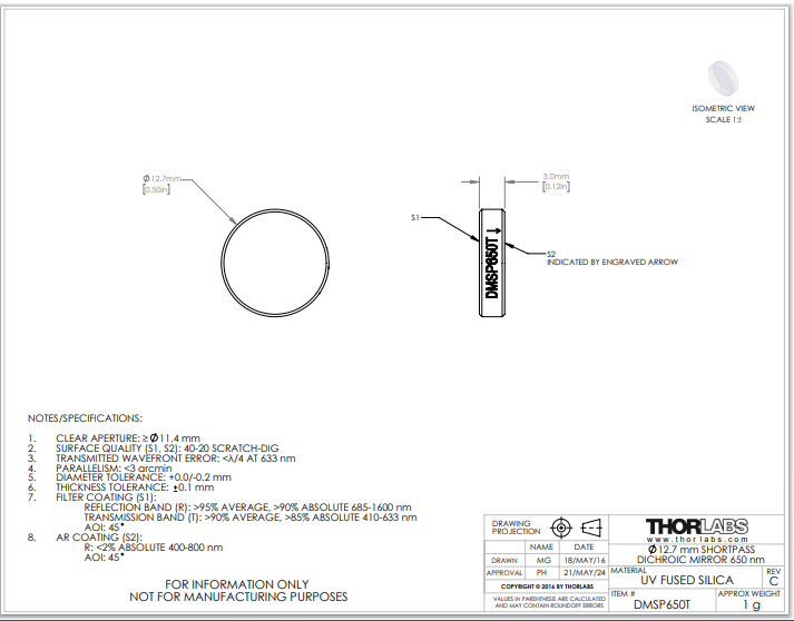 (1064 nm, 10 Hz, 10 ns, Ø1.00 mm)