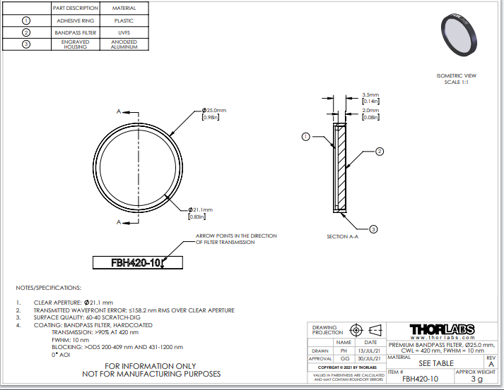 420 纳米(T > 90%)