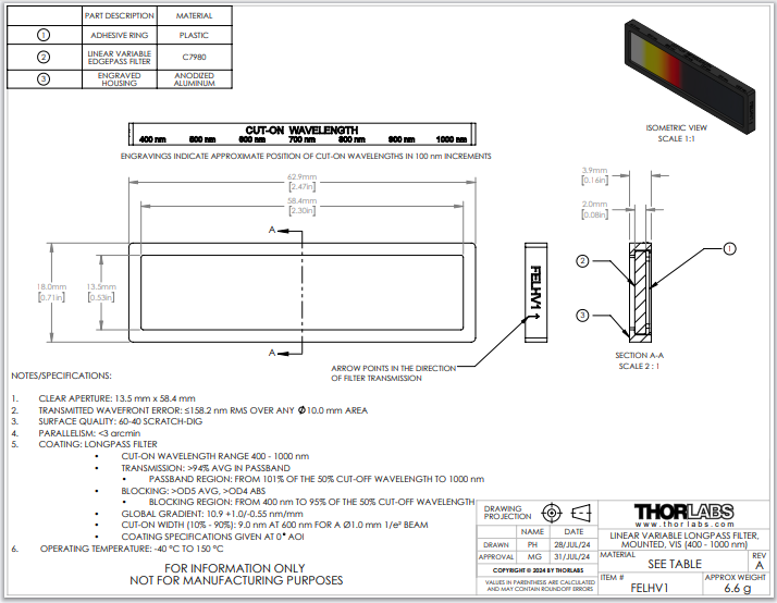 Thorlabs索雷博 FELHV1 线性渐变滤光片