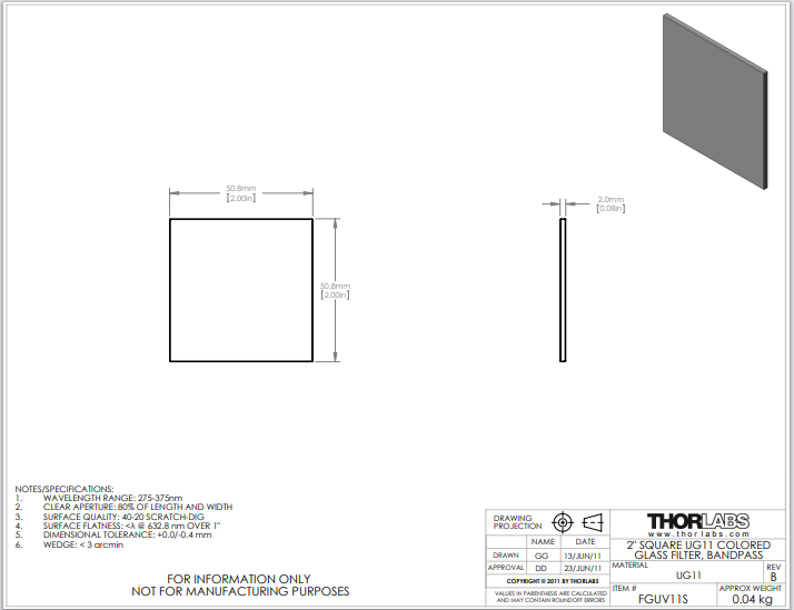 Thorlabs索雷博 FGUV11S 带通滤光片