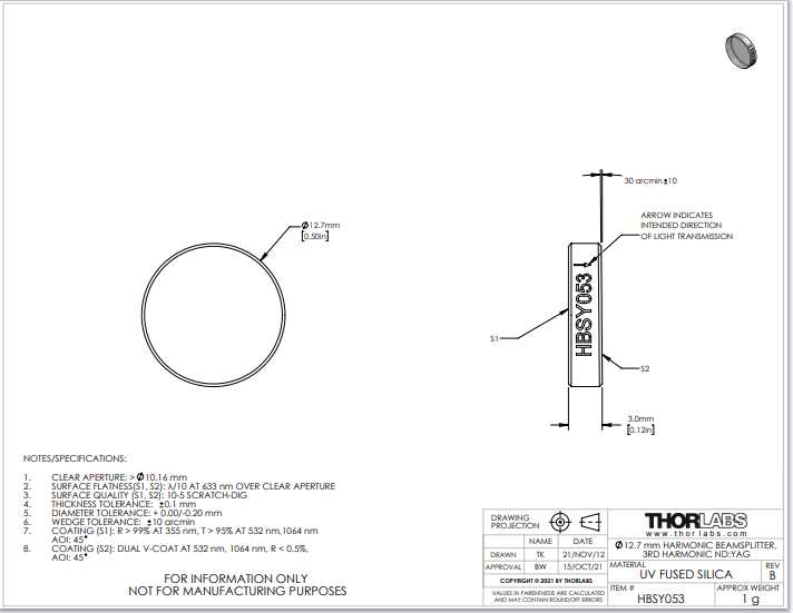 Thorlabs索雷博 HBSY053 谐波分光镜
