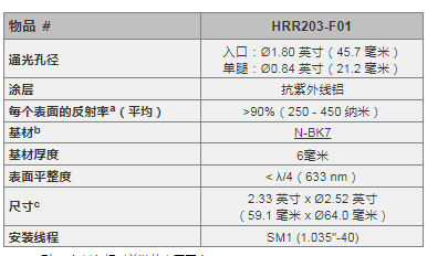 Thorlabs索雷博 HRR203-F01 中空回射器