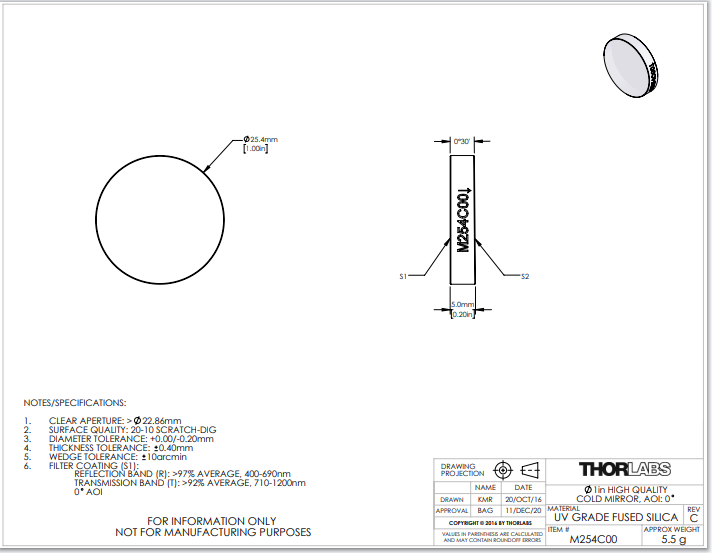 Thorlabs索雷博 M254C00 冷镜