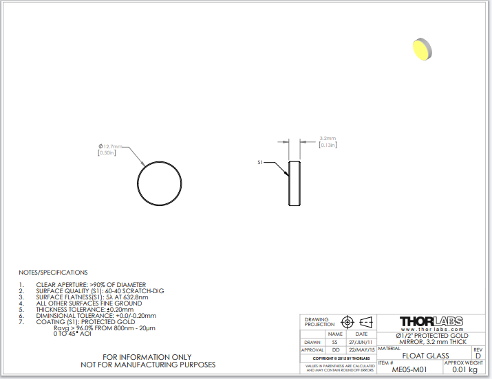 Thorlabs索雷博 ME05-M01 平面反射镜