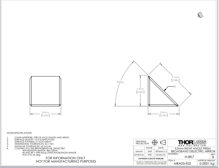 Thorlabs索雷博       MRA05-E02   直角棱镜反射镜