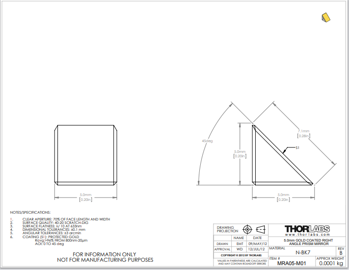 Thorlabs索雷博       MRA05-M01   直角棱镜反射镜