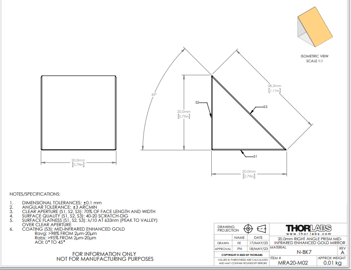 Thorlabs索雷博       MRA20-M02   直角棱镜反射镜