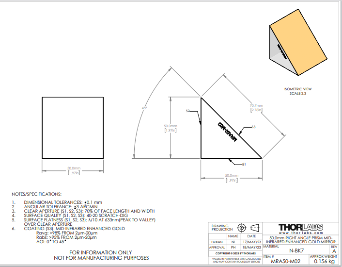 Thorlabs索雷博 MRA50-M02 直角棱镜反射镜