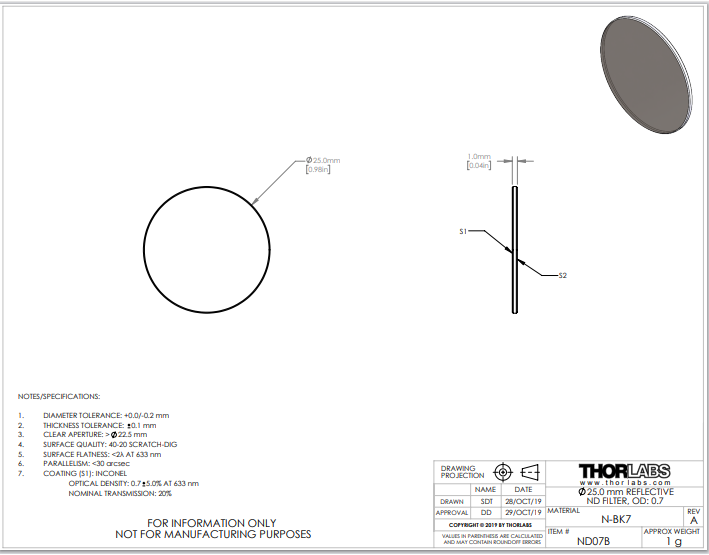 Thorlabs索雷博       ND07B   反射型ND滤光片
