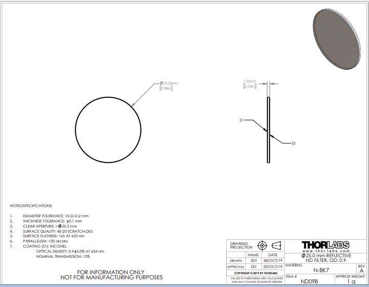 Thorlabs索雷博 ND09B 反射型ND滤光片