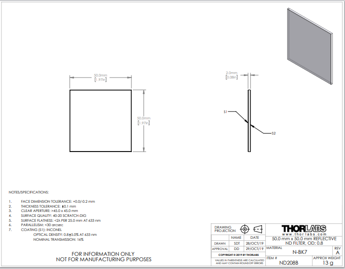 Thorlabs索雷博 ND208B 反射型ND滤光片