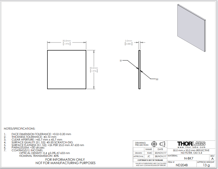Thorlabs索雷博       ND204B   反射型ND滤光片
