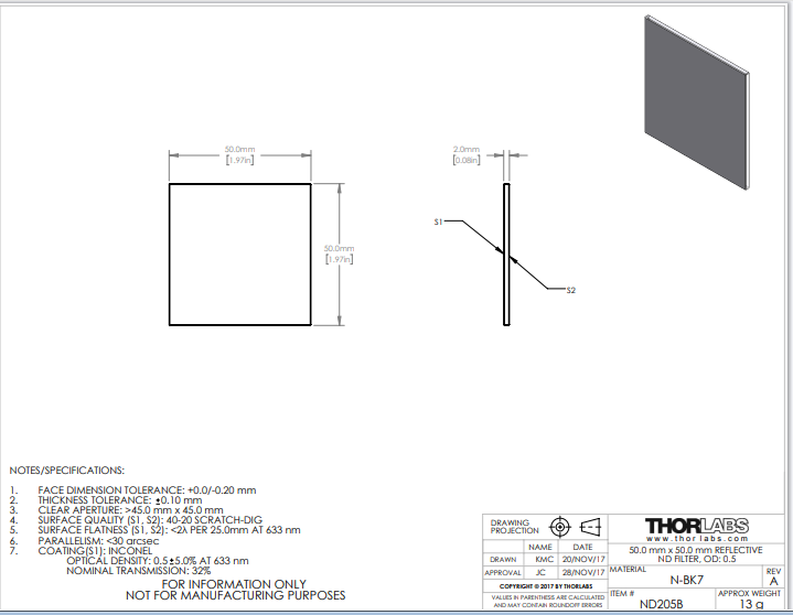 Thorlabs索雷博 ND205B 反射型ND滤光片