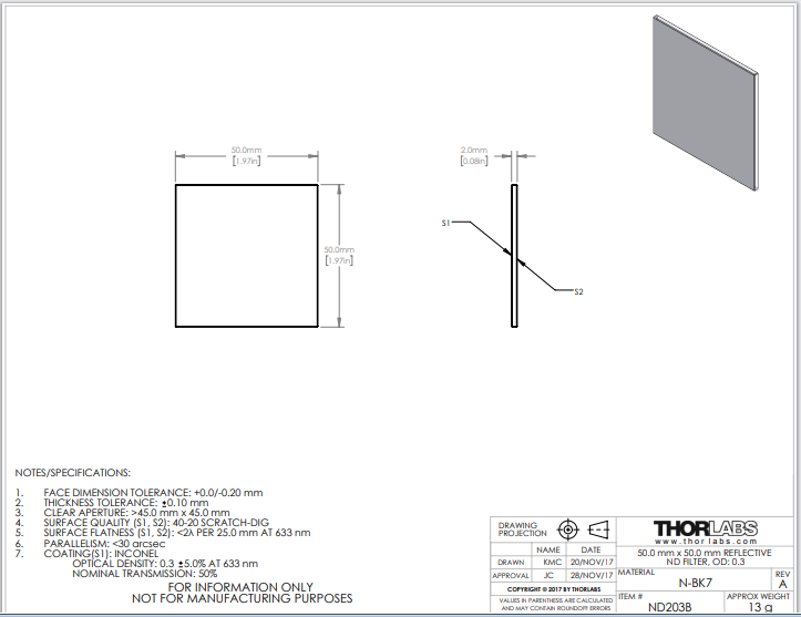 Thorlabs索雷博 ND203B 反射型ND滤光片