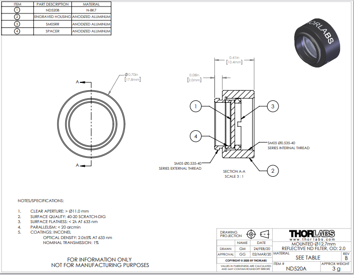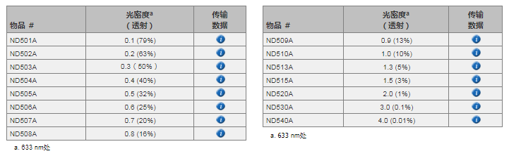 Thorlabs索雷博       ND520A   Ø1/2英寸反射型中性密度滤光片