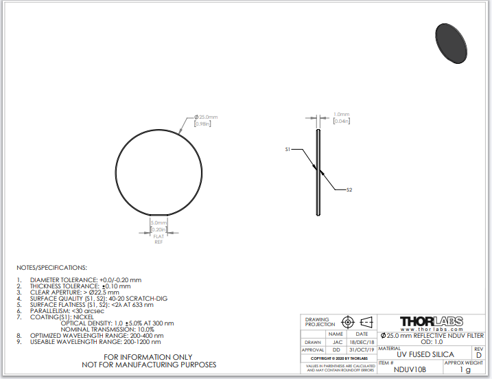Thorlabs索雷博       NDUV10B   中性密度滤光片