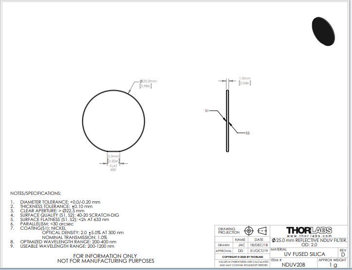 Thorlabs索雷博 NDUV20B 中性密度滤光片