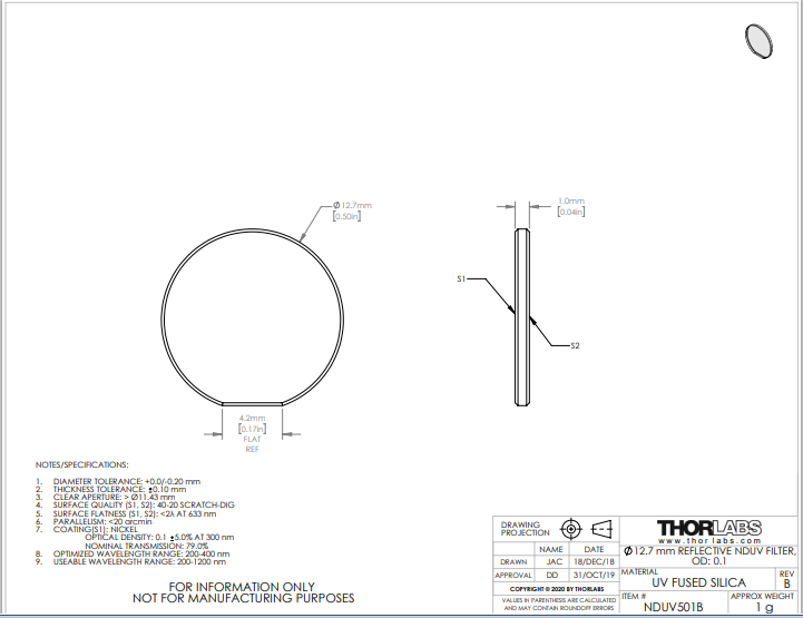 Thorlabs索雷博       NDUV501B   中性密度滤光片