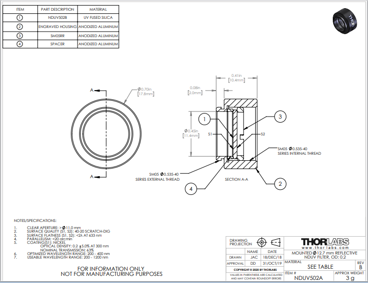 Thorlabs索雷博 NDUV502A 反射型中性密度滤光片