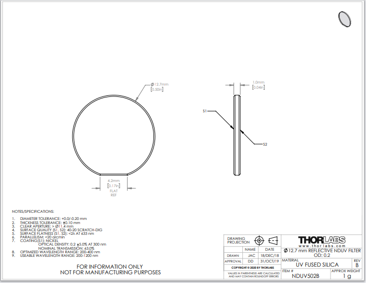 Thorlabs索雷博 NDUV502B 中性密度滤光片