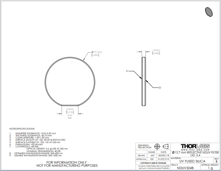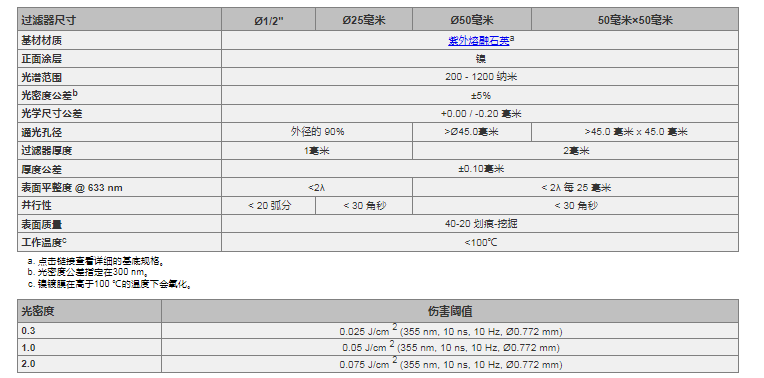 Thorlabs索雷博 NDUV504B 中性密度滤光片