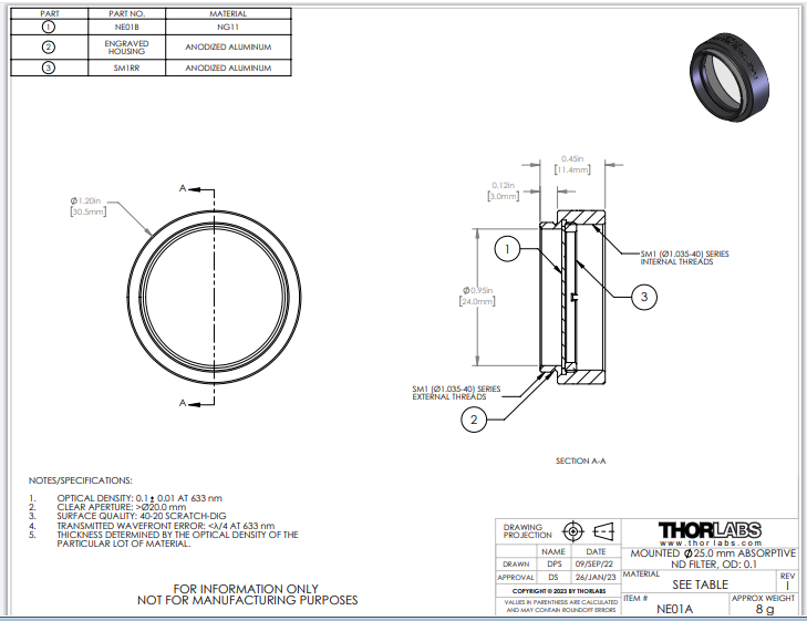 Thorlabs索雷博 NE01A 吸收型中性密度滤光片
