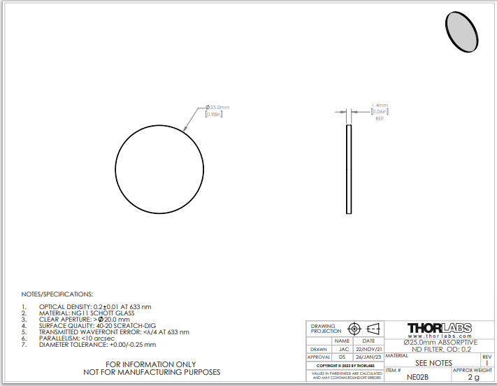 Thorlabs索雷博       NE02B   吸收型中性密度滤光片