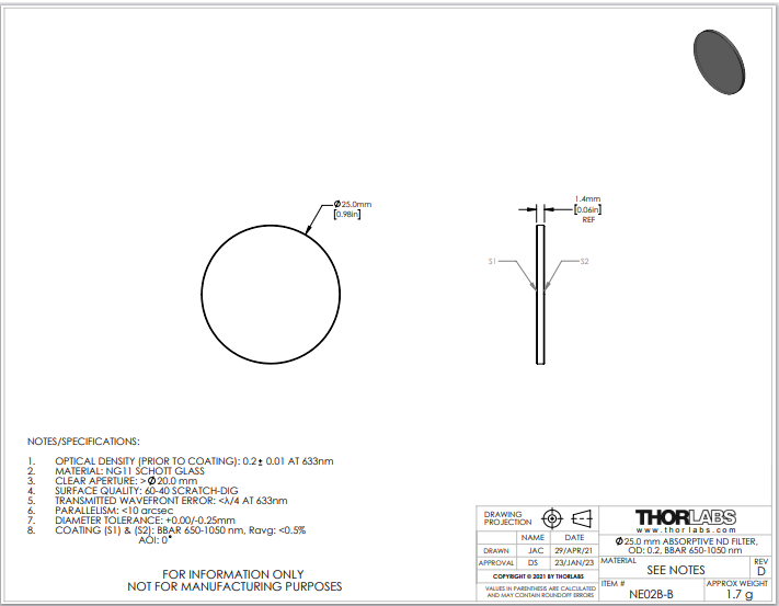 Thorlabs索雷博       NE02B-B   中性密度滤光片