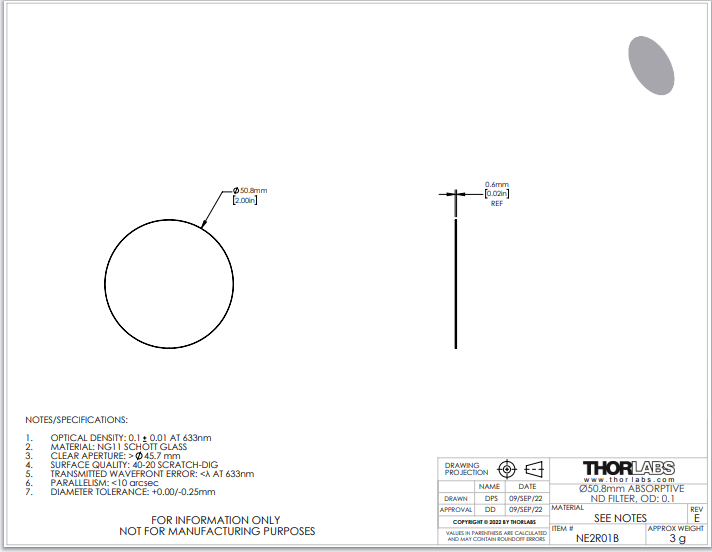 Thorlabs索雷博 NE2R01B 吸收型中性密度滤光片