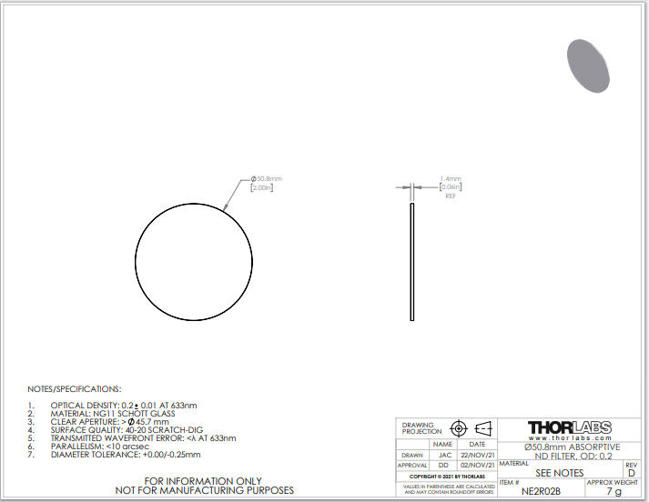 Thorlabs索雷博 NE2R02B 吸收型中性密度滤光片