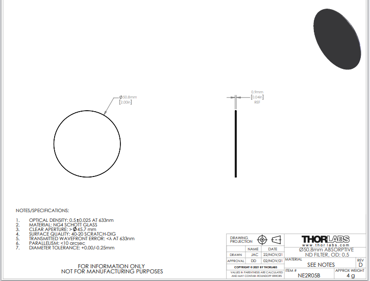 Thorlabs索雷博 NE2R05B 吸收型中性密度滤光片